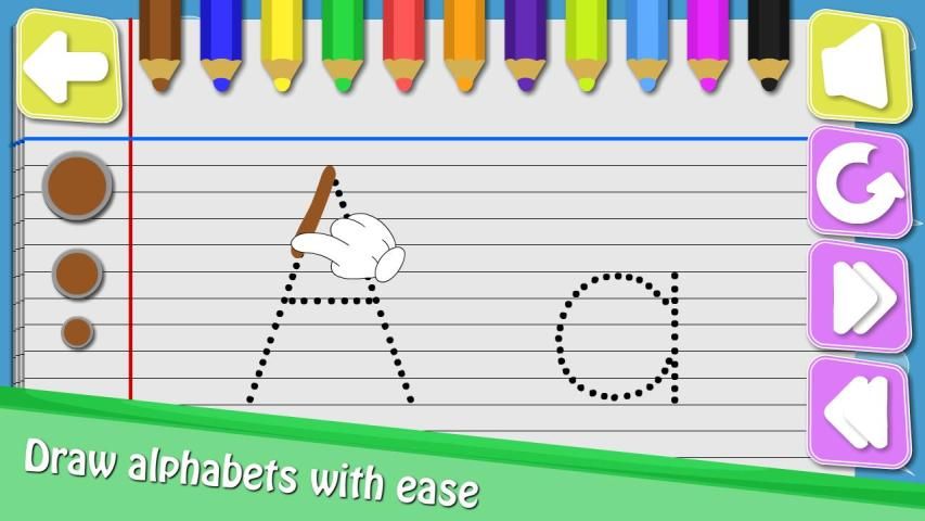 फ्री हाथ ड्राइंग बहुत ही दिलचस्प मोड है। यहाँ एक बच्चा या बच्चे को अपने दम पर एक वर्णमाला आकर्षित कर सकते हैं। विभिन्न ब्रश और रंगों के इस मोड में पैलेट में उपलब्ध हैं।