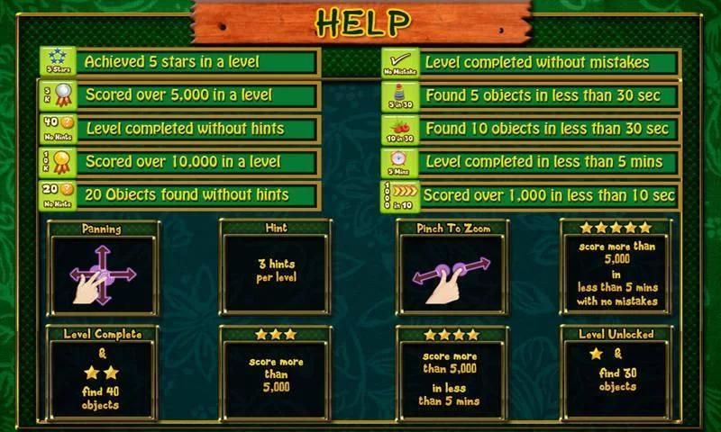 • एक काम संकेत सुविधा यादृच्छिक वस्तुओं के रूप में चित्रों में छिपे खजाने खोजने के लिए।