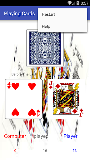 यदि कार्ड एक जोकर या पिछले एक के साथ संगत है, तो आपको एक कार्ड चुनना होगा, खिलाड़ी, एस स्कोर बढ़ेगा।
