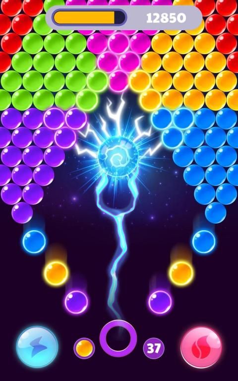 - शूटिंग के लिए मजेदार पहेली और रंगीन बुलबुले के बहुत सारे