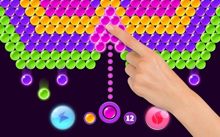 - Drag your finger to move the laser aim and lift it to shoot bubbles.