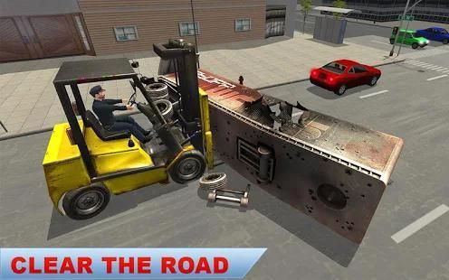 City police forklift is an action packed 3D game for all of you. Be a professional police forklift driver and remove the wrong parked and unwanted cars from the no car parking zone around the shopping areas and city centres. With all the essential heavy machinery, Transport truck, forklift the car and other vehicle from the road accident locations and drag or move them to the workshop, police station or junkyard. You can enjoy with city police forklift driving game.