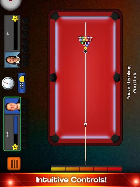 • कंप्यूटर के खिलाफ या मल्टीप्लेयर 8 बॉल पूल में एक मानव बनाम प्ले