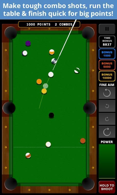 पूल त्यागी आप गति, कौशल और कॉम्बो शॉट शूट करने की क्षमता के साथ, मेज समाशोधन द्वारा 8 गेंद पिछले अंक कमाने जहां एक एकल खिलाड़ी बिलियर्ड्स पूल खेल है.