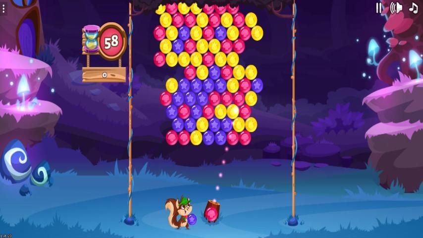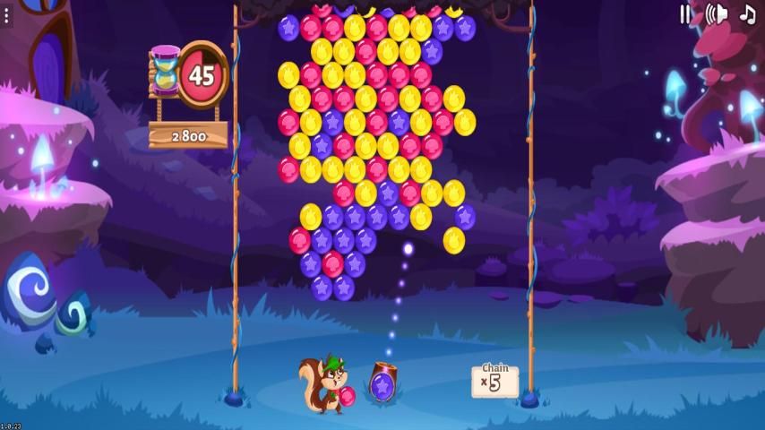 Enter the magical forest and earn as many points as you can in 60 seconds! Your goal in this fast-paced bubble shooter is to match 3 or more bubbles of the same color to pop them. Play smart and bounce balls off the walls to reach strategically important bubbles - dropping big clusters can give you a huge bonus! Use powerful boosters to score even more points and try to reach the highest score!