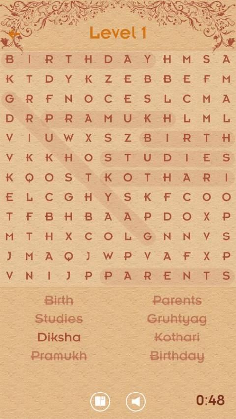 This Word Search App game has been made to express our gratitude to Pramukh Swami Maharaj who lived his life and did everything ‘In the joy of others.” This game is an educational game that enables every player learn about the life of Pramukh Swami Maharaj through four topics:
