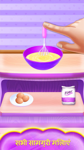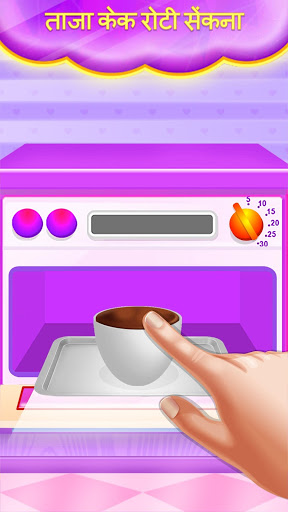 बनाने और स्क्रीन पर सरल निर्देश का पालन करके विभिन्न अवयवों के साथ केक सेंकना।