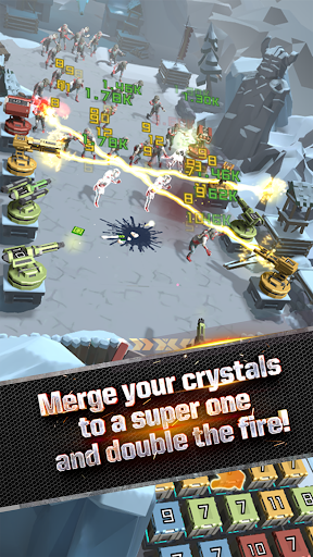 अपने क्रिस्टल को उच्च स्तर पर मर्ज करें और अपने क्रिस्टल को लाश के खिलाफ बुर्ज ग्रिड से लड़ें।