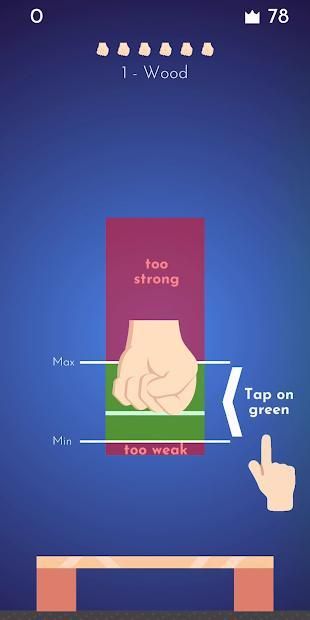 Tap at the right time to punch through stacked blocks of wood, concrete, iron, steel and more.