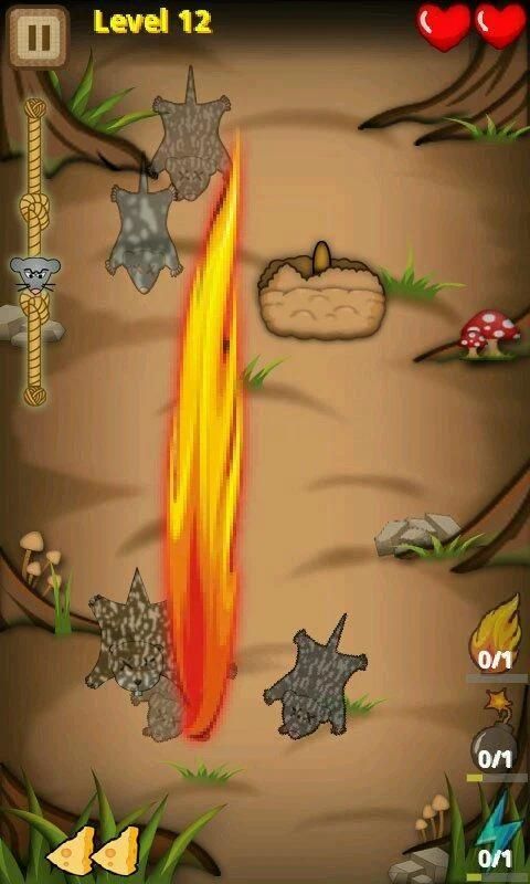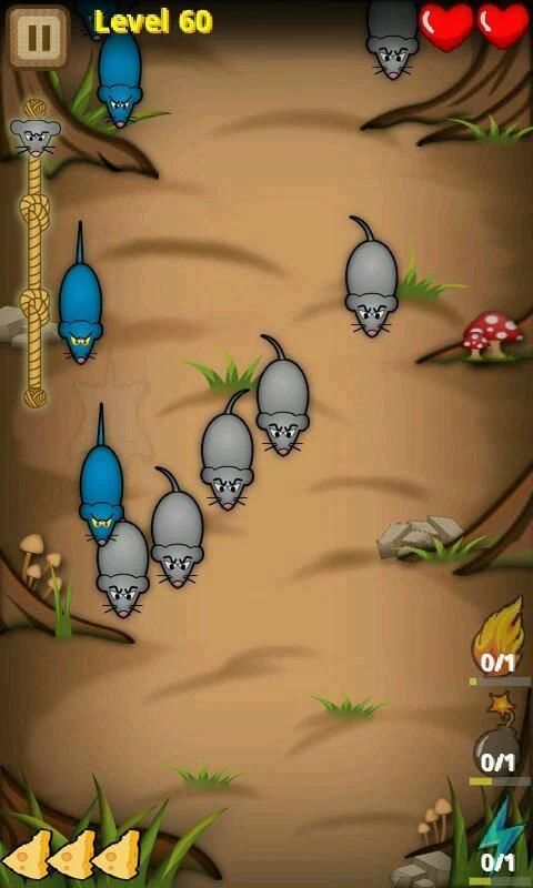 A large group of mice of unknown origin invaded your farm. Being a cheese farm owner, it's time to stand and defend your home. Now, only you can stop these greedy mice. Is your reaction fast enough? Fast tapping with your fingers, beating, grinding and repelling these mice. To destroy a cluster by wisely making the best use of your powerful tools, such as bomb, fire and lightning.
