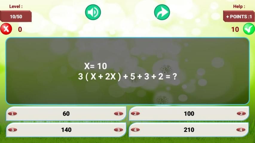 This game consists of a math quiz and each quiz consists of random puzzles.
