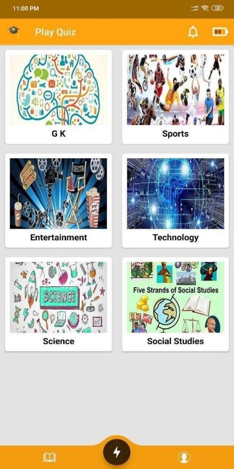 उसके लिए हम क्विज़ और लर्न फॉर क्विज़ दो अलग-अलग टैब प्रदान कर रहे हैं, विभिन्न विषयों जैसे "जी.के., स्पोर्ट्स, एंटरटेनमेंट, साइंस, टेक्नोलॉजी, सोशल स्टडीज़" पर