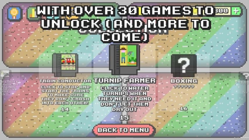 दुकान से अधिक खेल कारतूस खरीदने के लिए खेल के भीतर सिक्के ले लीजिए। आप खेलने के लिए 8 अलग-अलग आर्केड गेम के साथ शुरू करते हैं लेकिन आपके संग्रह में (और आने के लिए!) जोड़ने के लिए कुल 30 आर्केड गेम हैं।