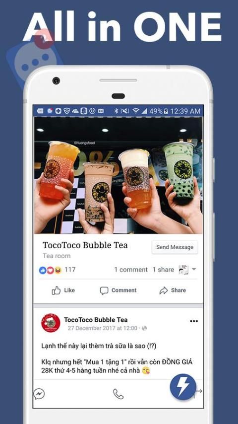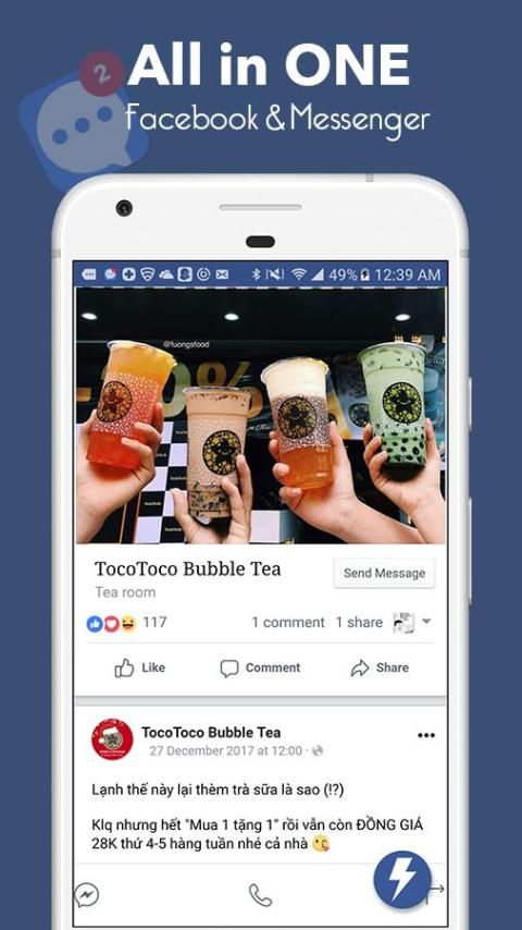 is Free, lightweight alternative for both Facebook and Messenger which allows you to chat, call, video call with your friends, send emoticon, videos, images, gift, browse newsfeed, comments, etc... and protect your privacy.