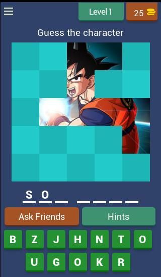 ड्रैगन बॉल वर्ण एक मजेदार क्विज़ गेम है जहां आपको प्रत्येक स्तर पर ड्रैगन बॉल यूनिवर्स के सबसे लोकप्रिय पात्रों का अनुमान लगाना चाहिए। गेम में टीवी सेरी, एनीमे या वीडियो गेम के पात्र शामिल हैं, जिसमें ड्रैगन बॉल जेड, ड्रैगन बॉल सुपर या ड्रैगन बॉल जीटी के पात्र भी शामिल हैं।