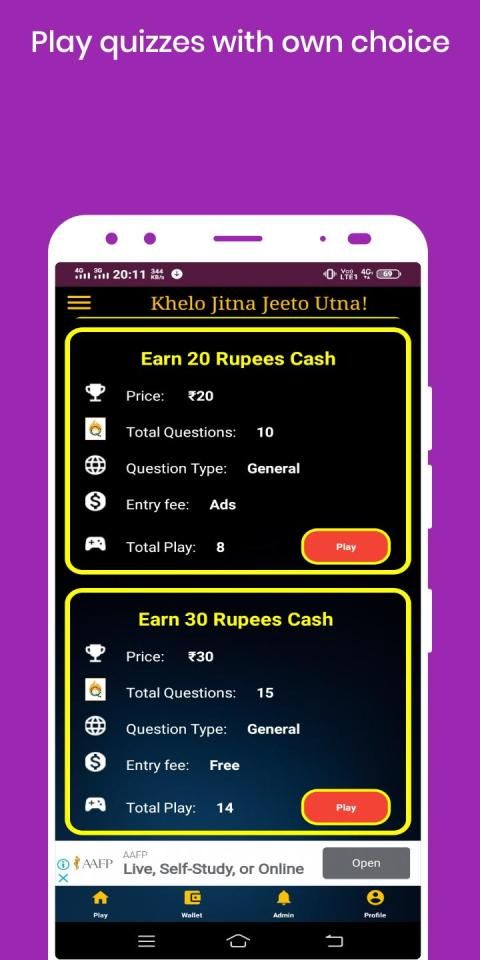 Quizer application gives you unlimited chances to play Quizes and earn money.