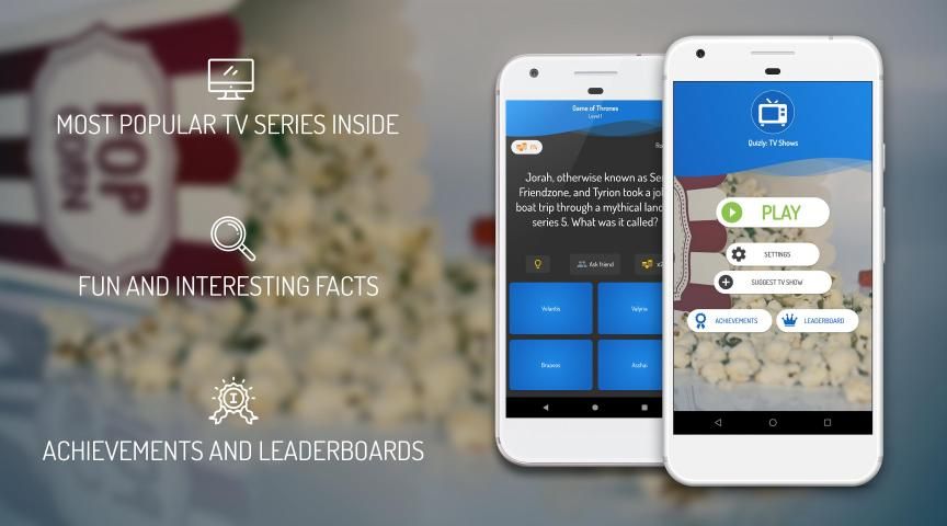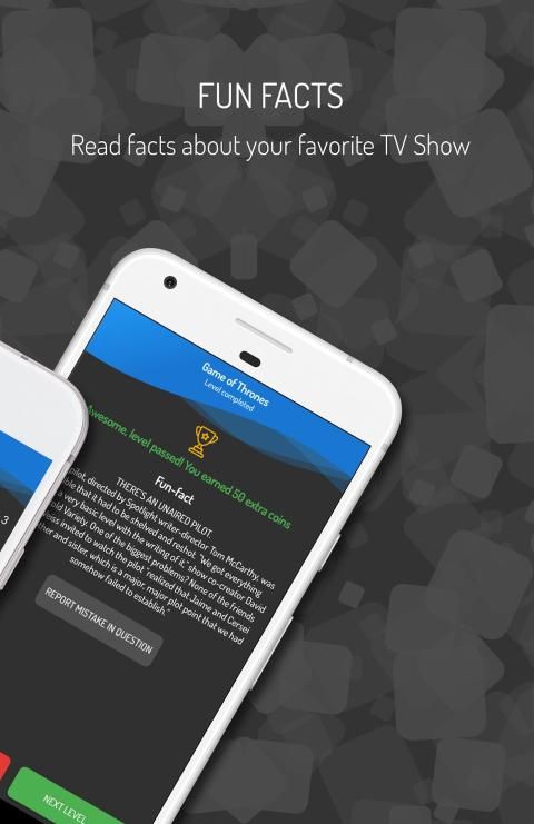 We offer most popular TV Shows and we constantly adding more and more quizzes. So stay tuned, because in next update you can get a surprise! Every quiz have 7 rounds and every round have one question with 4 options to choose. Only one answer is correct. You can earn coins only once, choosing right answer for a first time. Also, you can earn extra 50 coins, if you answer on all questions correctly in a row. So there is a lot to win! And it's not the end. After correctly finishing every level, you can win an interesting and fun facts about your favorite TV Shows, so you'll be able to learn something more about that show than it's story ;). Quizly is the best TV Shows quiz on the internet, we check every question twice before put it into the game. But - everyone make mistakes. If you think, that in some questions in our quiz are inccorrect, feel free to report those question at the end of a level. We will carefully check it again :)