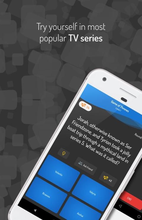 Test your knowledge in your favorite TV Shows and tv series, earn points, complete achievements and try to get to the first position in leaderboard that prove you're the best in the world. It's the best Quiz you'll ever play.
