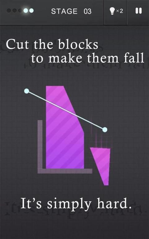 ठोकर और ब्लॉकों में कटौती करने के लिए स्क्रीन पर खींचें। ब्लॉक की 80% बंद स्क्रीन गिरने अगर तुम जीत जाएगा।