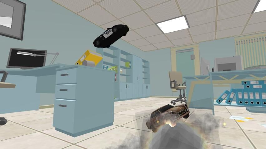 This RC simulator lets you control and drive a police RC car in realtime as you explore the offices in high speed intense driving action!