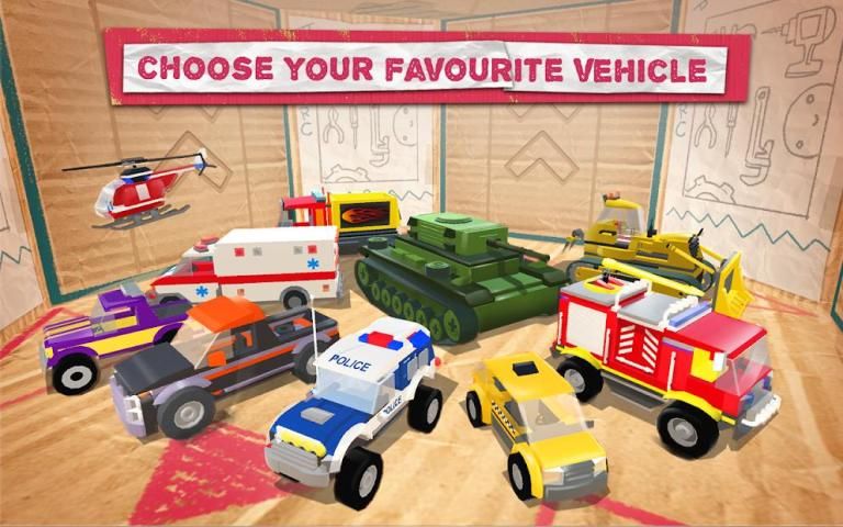 की एक विस्तृत विविधता: हेलीकाप्टर, युद्ध टैंक, पुलिस कार, फायर ट्रक, राक्षस ट्रक, हिमपालन और बहुत कुछ।
