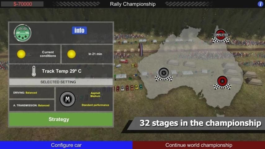 Take your team to the victory of the Rally Championship divided into 32 stages. The stages run through different surfaces in asphalt, land and snow rallies.