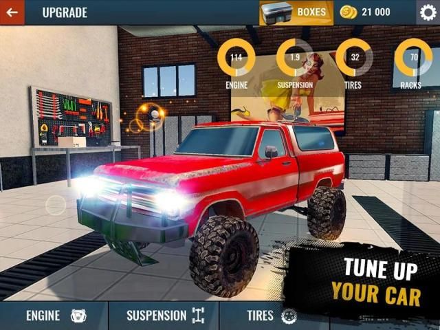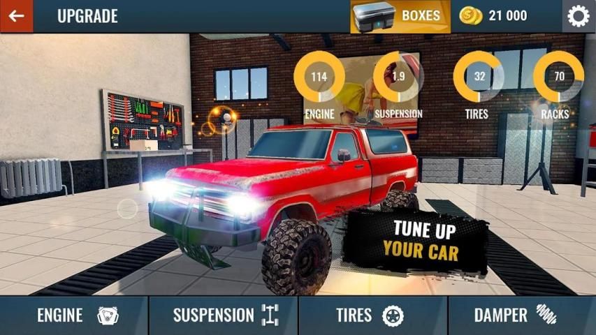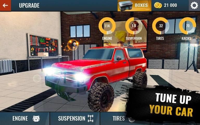 नियमित एसयूवी से लेकर एक विशाल राक्षस-ट्रक तक, विभिन्न वर्गों की रैली रेसिंग कारों के 18 पहियों के पीछे जाओ, और विभिन्न उन्नयन और अनुकूलन ट्यूनिंग तत्वों का उपयोग करके उन्हें वास्तविक गंदगी रेसिंग राक्षसों में बदल दें। अपने ड्राइविंग शैली के अनुरूप एक अद्वितीय रेसिंग वाहन बनाने के लिए नए इंजन, ब्रेक, पहियों और कई अन्य हिस्सों का उपयोग करें!