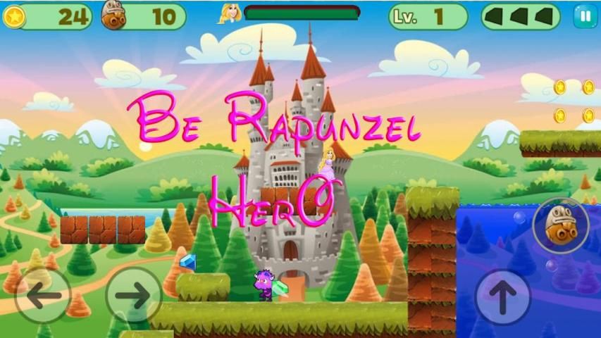 + रॅपन्ज़ेल सुपर राजकुमारी साहसिक को स्थानांतरित करने के लिए नियंत्रण पैड पर दाएं या बाएं क्लिक करें!