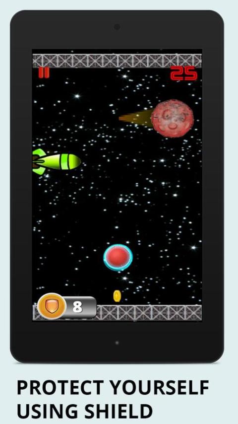 Tap the screen and help Red ball dodge the comets, rockets and other obstacles. Use the shields as often as possible to protect the ball from obstacles.