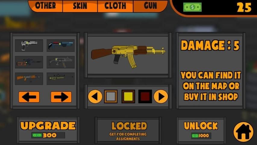 यह 2 डी शूटर गेम है जहां आप सादे सैनिकों से लेकर टैंक तक कई अलग-अलग दुश्मनों से लड़ सकते हैं, आप नक्शे का पता लगा सकते हैं, पूरी उपलब्धि हासिल कर सकते हैं और अपने हथियारों को अपग्रेड कर सकते हैं। यह गेम आपको कभी बोर नहीं करेगा क्योंकि दुश्मनों के खिलाफ लड़ाई आसान नहीं होगी । इसके अलावा खेल अनंत है और समय के आधार पर आप बच गए और आपके द्वारा मारे गए दुश्मनों को एक इनाम मिलेगा, तो आप अपने हथियार को अपग्रेड कर सकते हैं, नए कपड़े खरीद सकते हैं और अपने चरित्र को अनुकूलित कर सकते हैं। इस खेल में कोई स्पष्ट लक्ष्य नहीं है इसलिए आराम करो और मज़े करो।