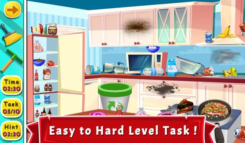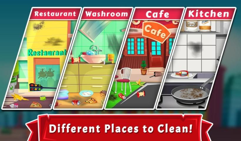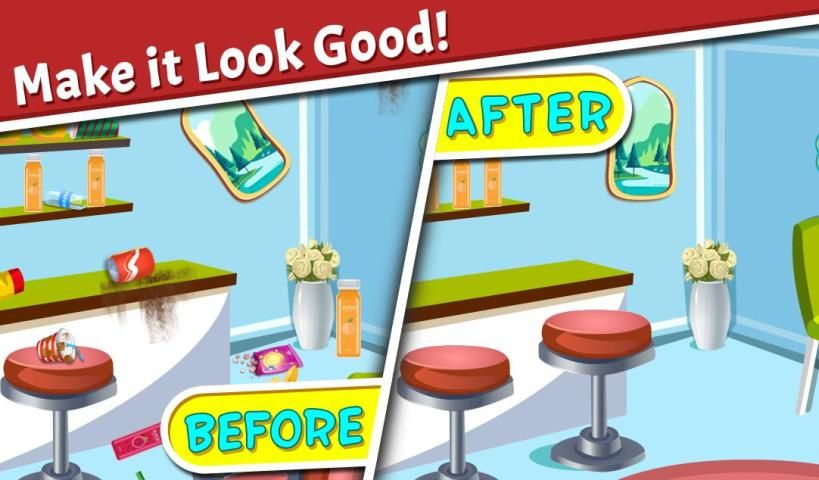 Clean the floors, ceiling, walls, furniture, etc. and put everything in their right places. This Restaurant Cleaning Game will be the great clean up games for girls who love to keep their things clean and also to other kids who can learn cleanliness which is very necessary for day to day life. Provide a peaceful and fresh atmosphere for customers and chefs. Put everything in order after the cleaning is done Misplaced things will be there to put them in their right place. Have a wonderful experience with this Restaurant Cleaning game and share it with your friends too. Download now!