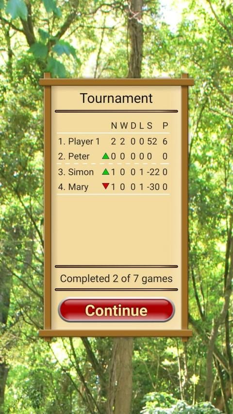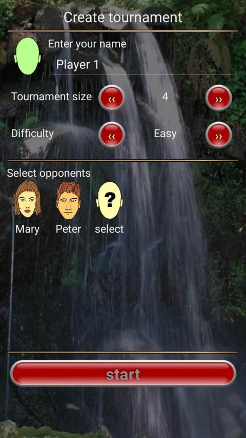 - Single game mode and tournament game mode.