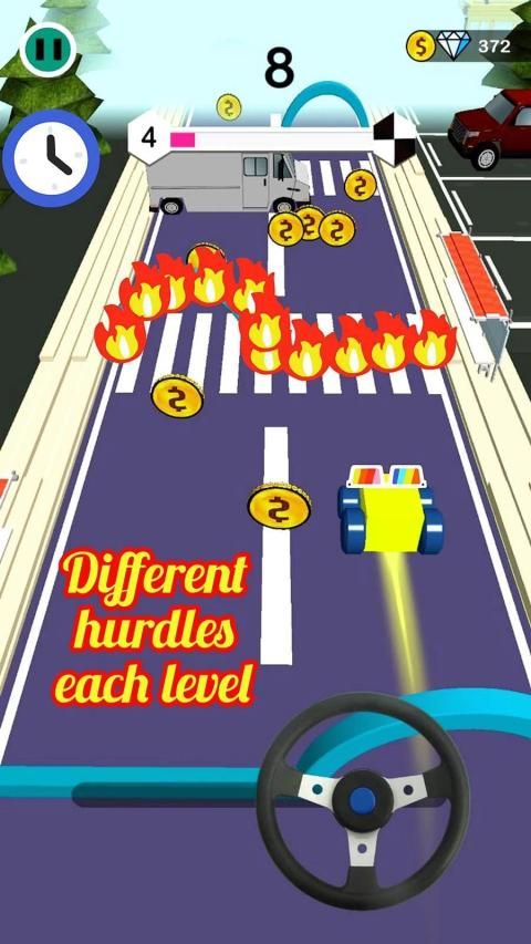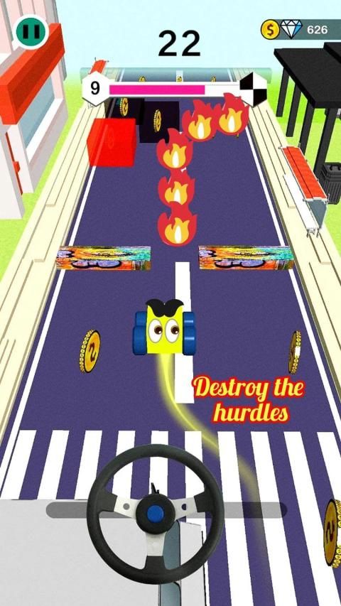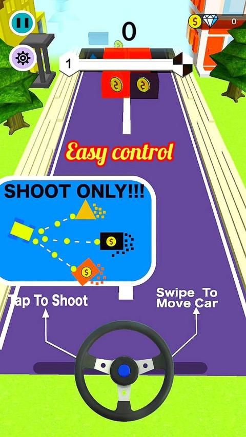 यह गेम आपके प्रतिक्रिया समय और सजगता का परीक्षण करने के लिए लाता है। आपको बस इतना करना है कि बाधाओं को चकमा देने के लिए बाएं या दाएं स्वाइप करें और स्टीयरिंग व्हील कंट्रोल पर टैप करके शूट को सक्रिय करके बाधा अवरोधों को चकनाचूर करना न भूलें।