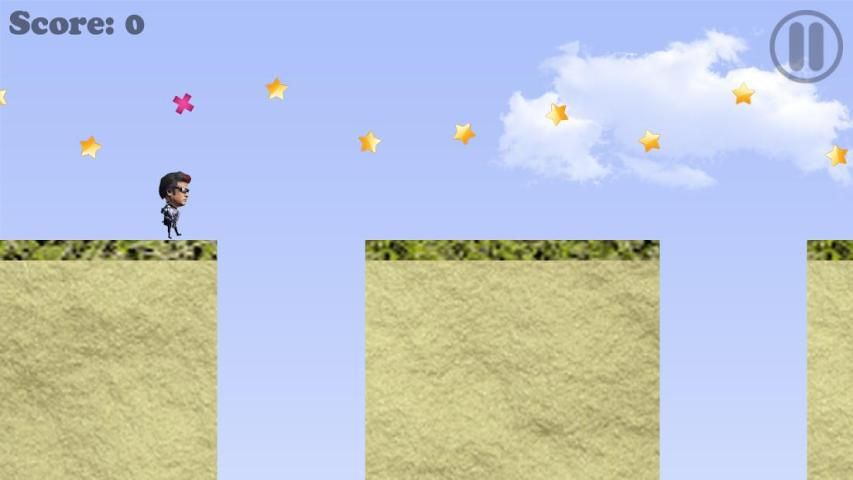 Tap on the screen to jump. The running speed tends to increase on the go. The red arrows in between the stars can help slow down the speed.