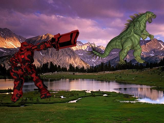 - रोबोट और राक्षस के बीच लड़ाई