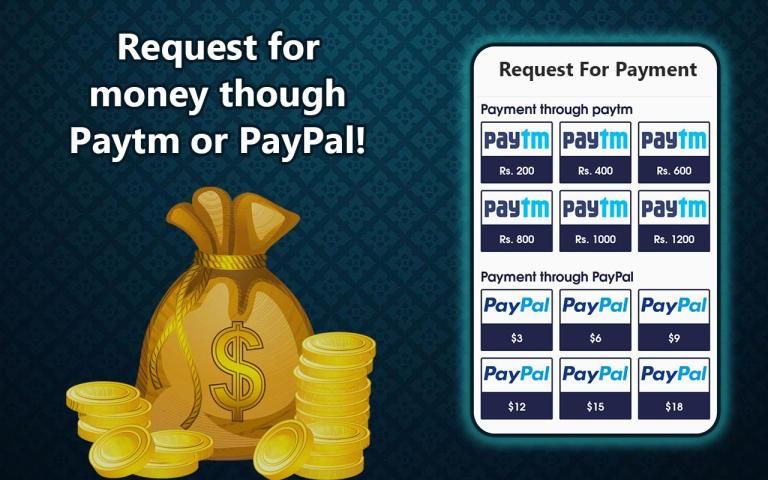 उपयोगकर्ता मुफ्त पेटीएम कैश, मुफ्त रिचार्ज, मुफ्त डिस्काउंट कूपन और पेपाल प्राप्त कर सकते हैं और कई और अधिक पेटीएम कैश कमा सकते हैं।