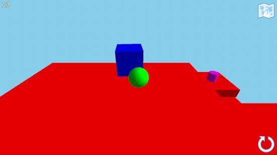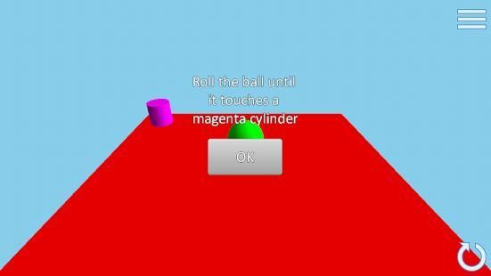 गेंद रोल, चारों ओर बक्से धक्का और अंत में एक मैजंटा सिलेंडर, कि एक स्तर के अंत के निशान हैं।