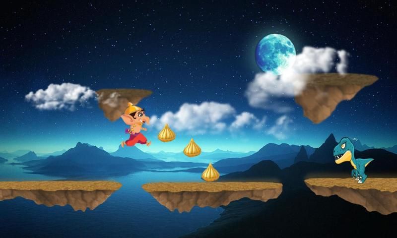 The game play of Lord Ganesha have to run and jump to escape from enemies and collect laddus.