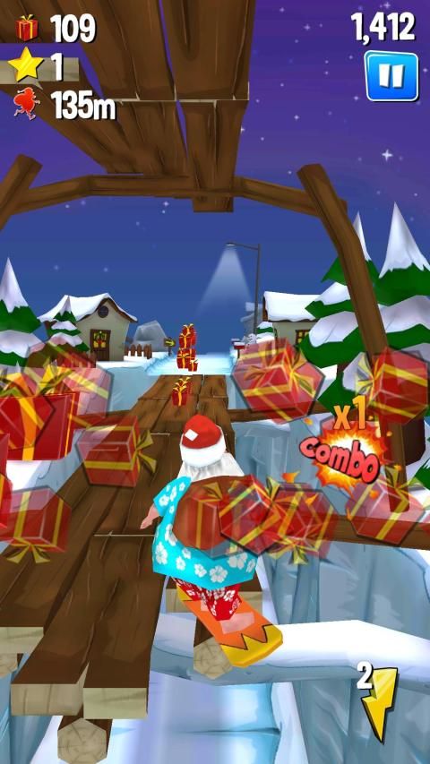 Fasten your belts and let the endless holiday run begin! Become Santa's best guide while navigating his run through the snowy North Pole village’s alleys.