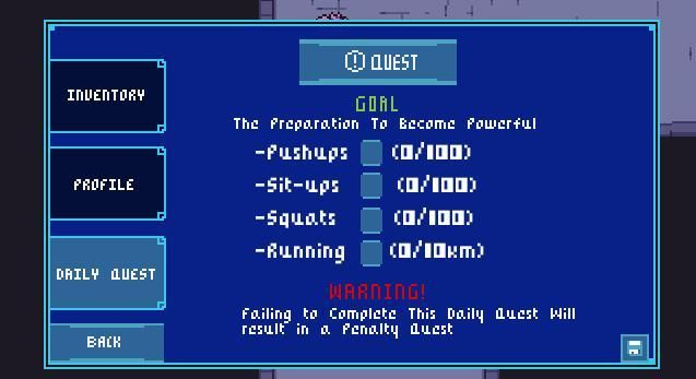 System based on solo leveling the manga/light novel where you can complete daily quests and many more quests to come. Fight through many monsters to complete different ranked dungeons!