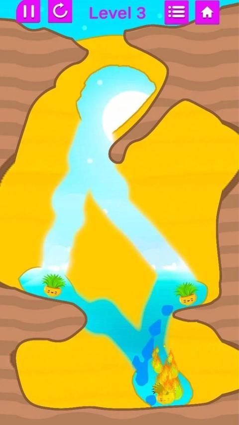 Sand digging game to find water sources and extinguish the fruit that is on fire, this game is very unique and funny, because you will drain the water to put out the fire, the burning balls you immediately put out with the water you dug.
