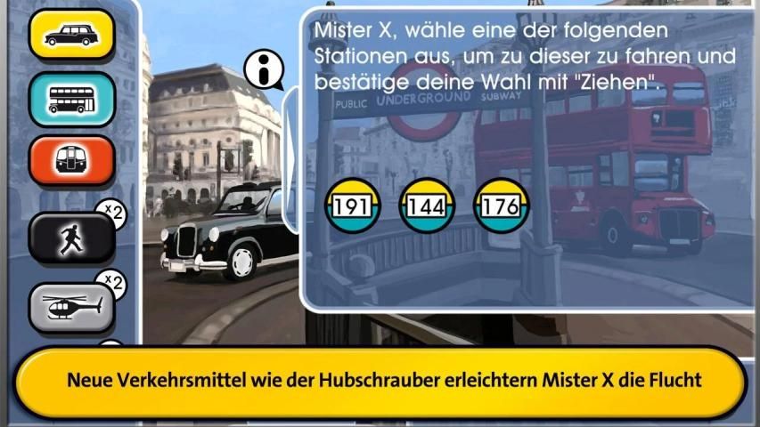 Zusammen mit dem Brettspiel bietet die App ein völlig neues und noch spannenderes Spielerlebnis. Die Detektive sind auf dem neuesten Stand der Technik und Mister X noch dichter auf den Fersen. In der digitalen Schaltzentrale finden sie alle wichtigen Infos: Mit welchen Verkehrsmitteln ist Mister X bisher gefahren?, wann muss er sich wieder zeigen?, welche Sonderaktionen können genutzt nutzen?