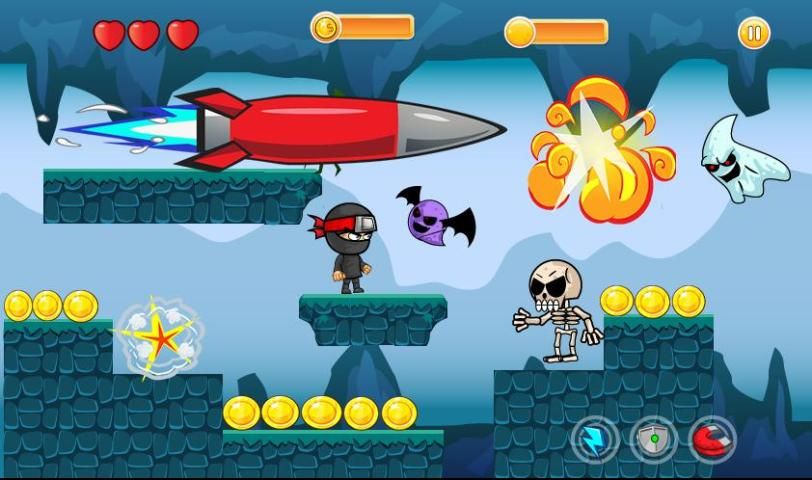 Shadow Ninja Ghost Run" game belongs to the classic platformer games that are suitable for all ages ,but mainly developed for kids.