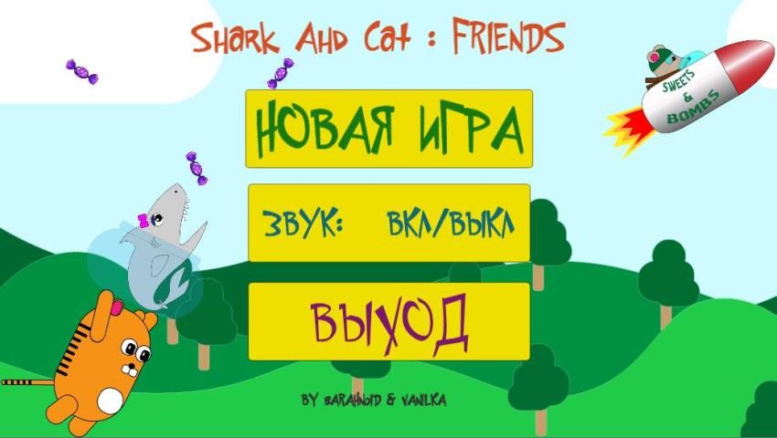Кот и акула являются лучшими друзьями и очень любят конфеты. Акула водный житель, поэтому кот помогает ей держа ее на лапах. Но также сладости любят и мыши. Вам необходимо собирать конфеты стараясь обогнать мышей, к тому же вы должны уклоняться от взрывов бомб и собирать жизни чтобы подлечиться.