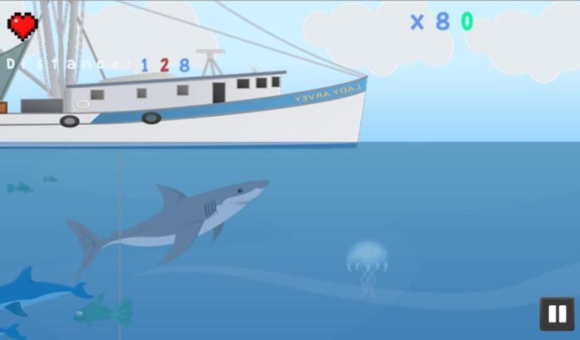 - एक स्पर्श नियंत्रण (शार्क जाने के लिए स्क्रीन पर नीचे पकड़ बाधाओं चकमा उठ या अपनी रात का खाना खाने)
