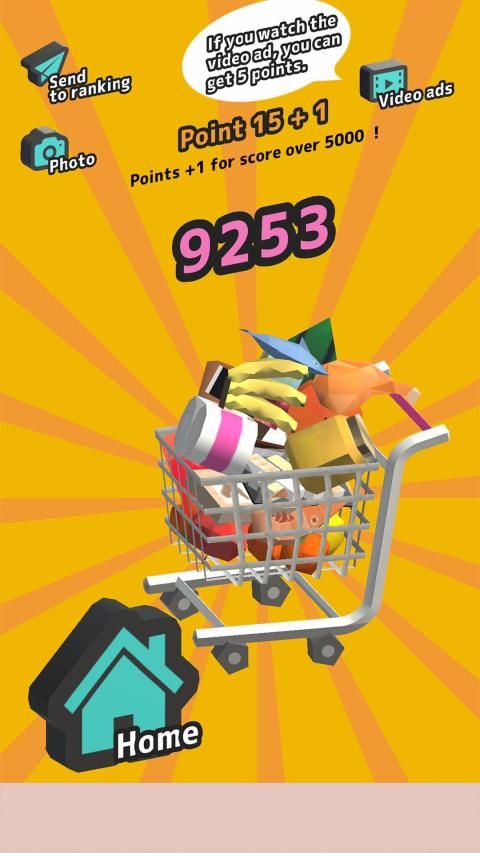 If you play the game a few times, you'll get yourself some points (one point for a score of over 5000). If you get more than 10 points, your cart will get bigger and it'll be easy for you to get high scores!