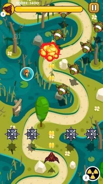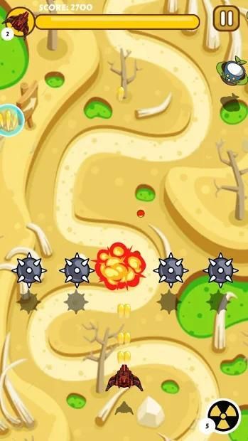 दुश्मन के विमानों की लहरों के माध्यम से अपना रास्ता शूट करने के लिए विमान को नियंत्रित करें। ऐसा करने के दौरान अपने हमलों और पिकअप पावर अप और बंदूक उन्नयन को चकमा दें। उच्च स्तर पर आगे बढ़ें।
