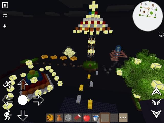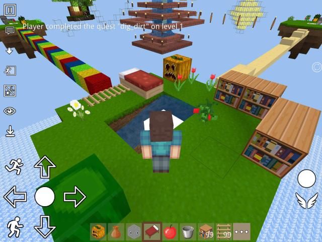 ->Variety of blocks:Bookshelf, brick, chest, clay, dirt, grass, furnace, glass, stone,dirt, grass,