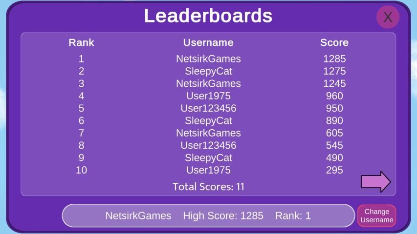 -Leaderboards: Create a username and aim for the highest score! Upload up to 10 scores on the leaderboards and compete with others for the best score