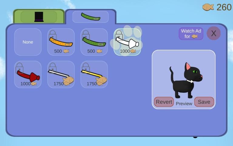 -Customization: Use fish treats to unlock hats and collars for your cat to wear!